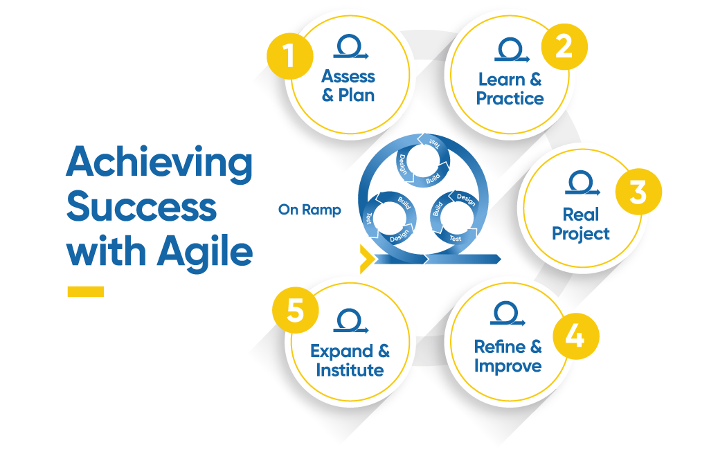 Our 5-iteration support approach begins with an in-depth assessment of your organizational goals, challenges, agile readiness and culture. Starting with a comprehensive assessment is essential for a timely and efficient transformation. We compile the results and facilitate alignment with your key stakeholders in creating a roadmap for success. Using that roadmap as a guide, we then facilitate team learning, project implementation, refinement, expansion and organizational institution. An agile approach to an agile NPD transformation, leveraging our expertise with your internal executive support allows timely adjustments along the way for successful change management and rollout.