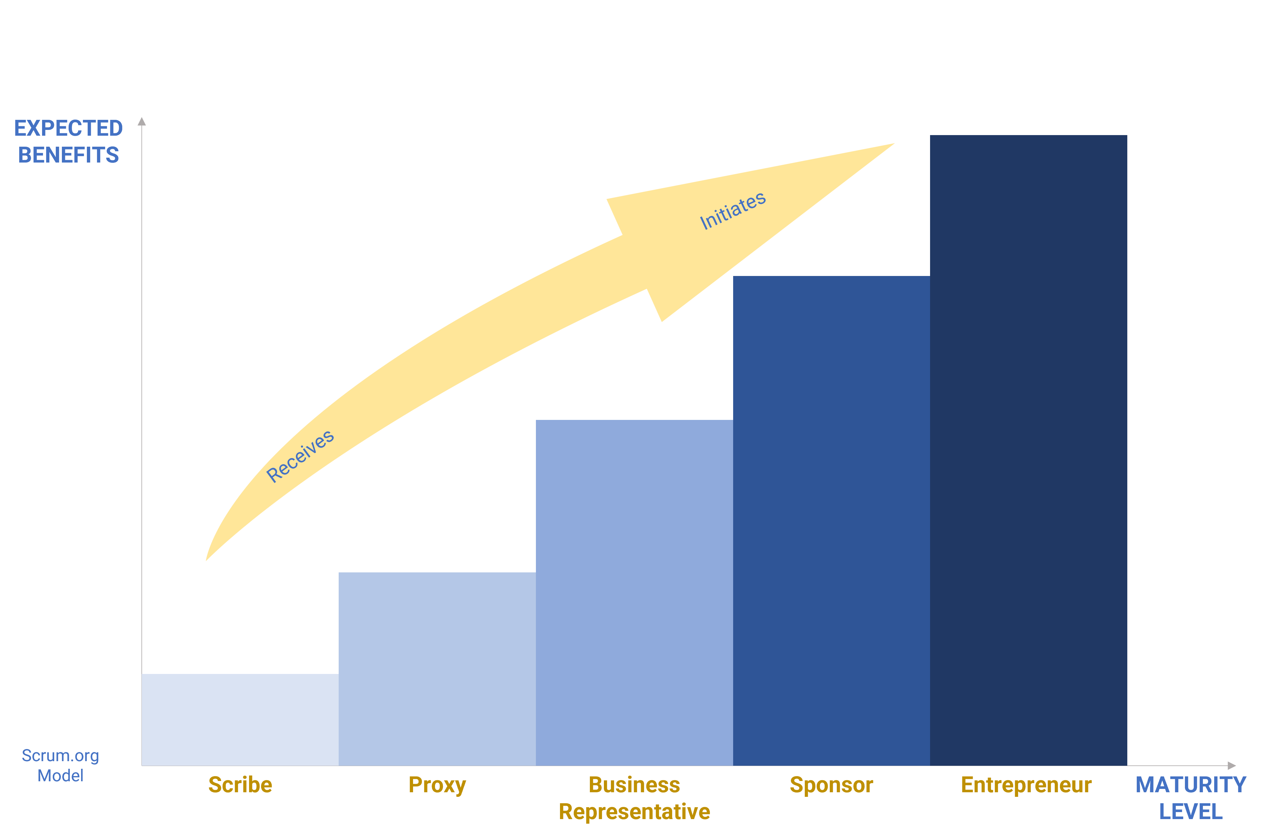 - It’s based on advancing through the 5-level Product Owner Maturity Model: Scribe > Proxy > Business Representative > Sponsor > Entrepreneur.